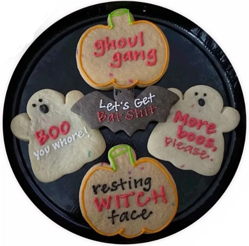 Tiered Cookie Cake (local pick-up only) from $85.00 ONE DOZEN Halloween Cookie Box $42.99 HALF DOZEN Halloween Cookie Box $34.99 ONE DOZEN Custom Cutout Cookies $42.99 ONE DOZEN, GLUTEN FREE Custom Cutout Cookies $48.99 Heart Cookie Cake (local pick-up only) $34.99 Set of 3 Cookie Cock Ring Cookies: COCKies $25.99 HALF DOZEN Minis $34.99 BRAVO Cookie Box $42.99 Mystery Box $42.99 ONE DOZEN Custom Dicks in a Box $42.99 TAYLOR SWIFT Cookie Box $42.99 Astrological Sign Cookie Box $42.99 12” Penis Cookie (local pick-up only) $32.00 13" Chocolate Chip Cookie Cake $38.99 13” FunNERfetti Cookie Cake (feat. White Choco Chips) $40.00 13" Funfetti Cookie Cake $35.99 13" Pink Sugar Cookie Cake $34.99 13" Sugar Cookie Cake $34.99 13" Chocolate, Chocolate Chip Cookie Cake $38.99 13" Snickerdoodle Cookie Cake $36.99 13" Brownie $34.99 13" Gluten-Free Chocolate Chip Cookie Cake $42.99 13" Gluten-Free Sugar Cookie Cake $40.00 13" Gluten-Free Pink Sugar Cookie Cake $40.00 13" Gluten-Free Funfetti Cookie Cake $40.00 13" Gluten-Free Chocolate, Chocolate Chip Cookie Cake $42.99 13" Gluten-Free Snickerdoodle Cookie Cake $40.00 13" Vegan Chocolate Chip Cookie Cake $45.00 13" Vegan Sugar Cookie Cake $45.00 13" Vegan Funfetti Cookie Cake $45.00